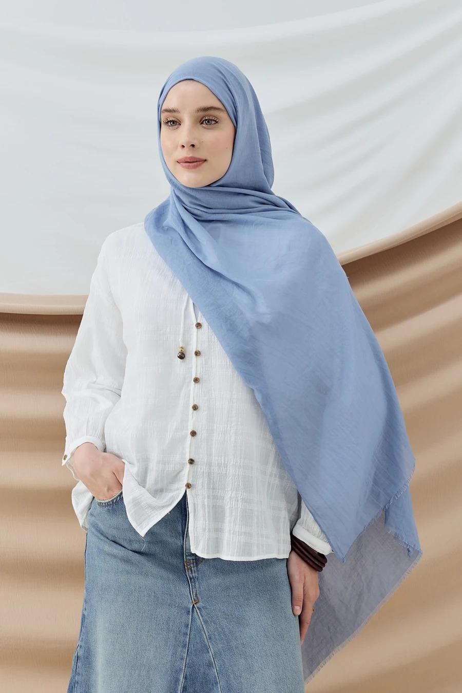 Pamuk içeriğiyle üretilen bu şal, hafif dokusu ve geniş ebatlarıyla gün boyu konforlu kullanım sunar. Nefes alabilen yapısı sayesinde terletmez, ciltle uyumlu doğal dokusu sayesinde hassas kullanımlar için idealdir. Zarif dokuma yapısı ve mat yüzeyiyle sadece ama etkiletici bir duruş sergiler. Günlük stilinize doğal bir şıklık katmak isteyenler için vazgeçilmez bir tamamlayıcı.