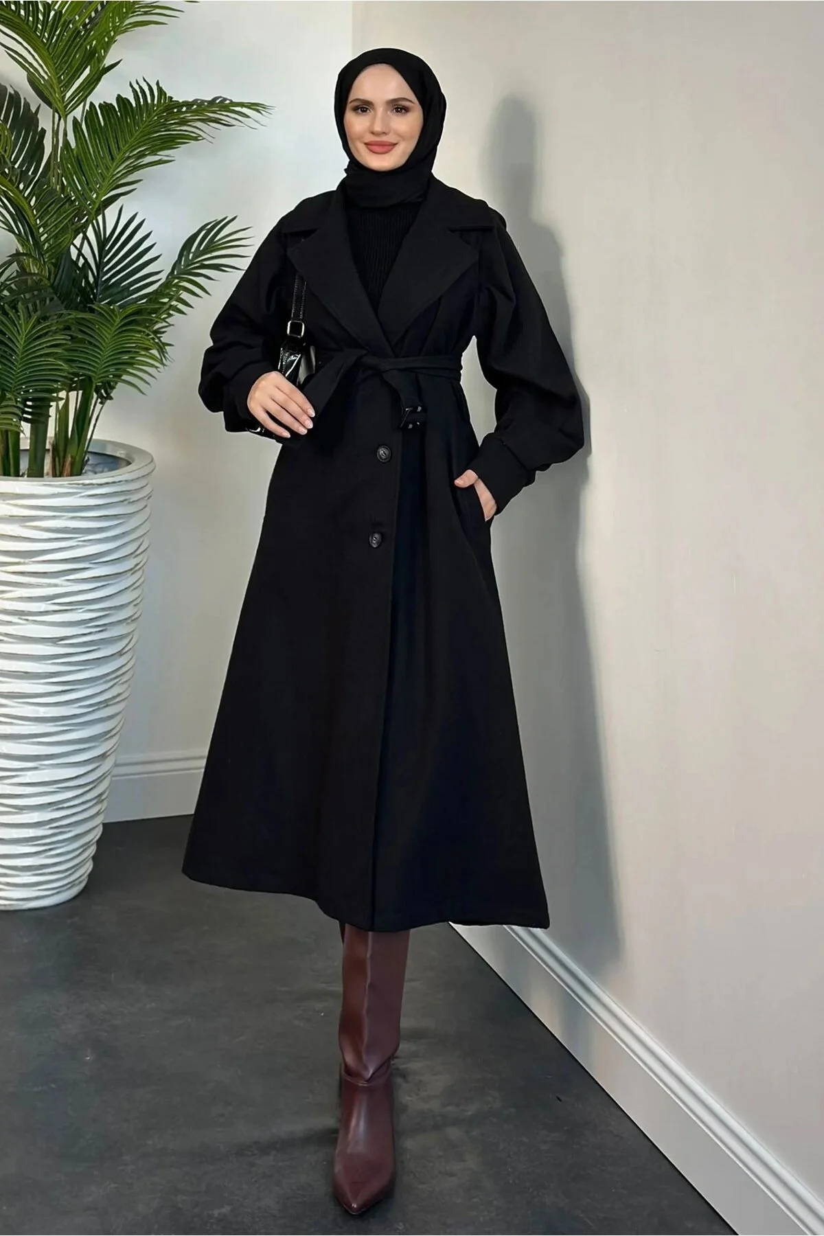 Balon Kol Nalin Kaşe Kaban- Siyah (TD313)