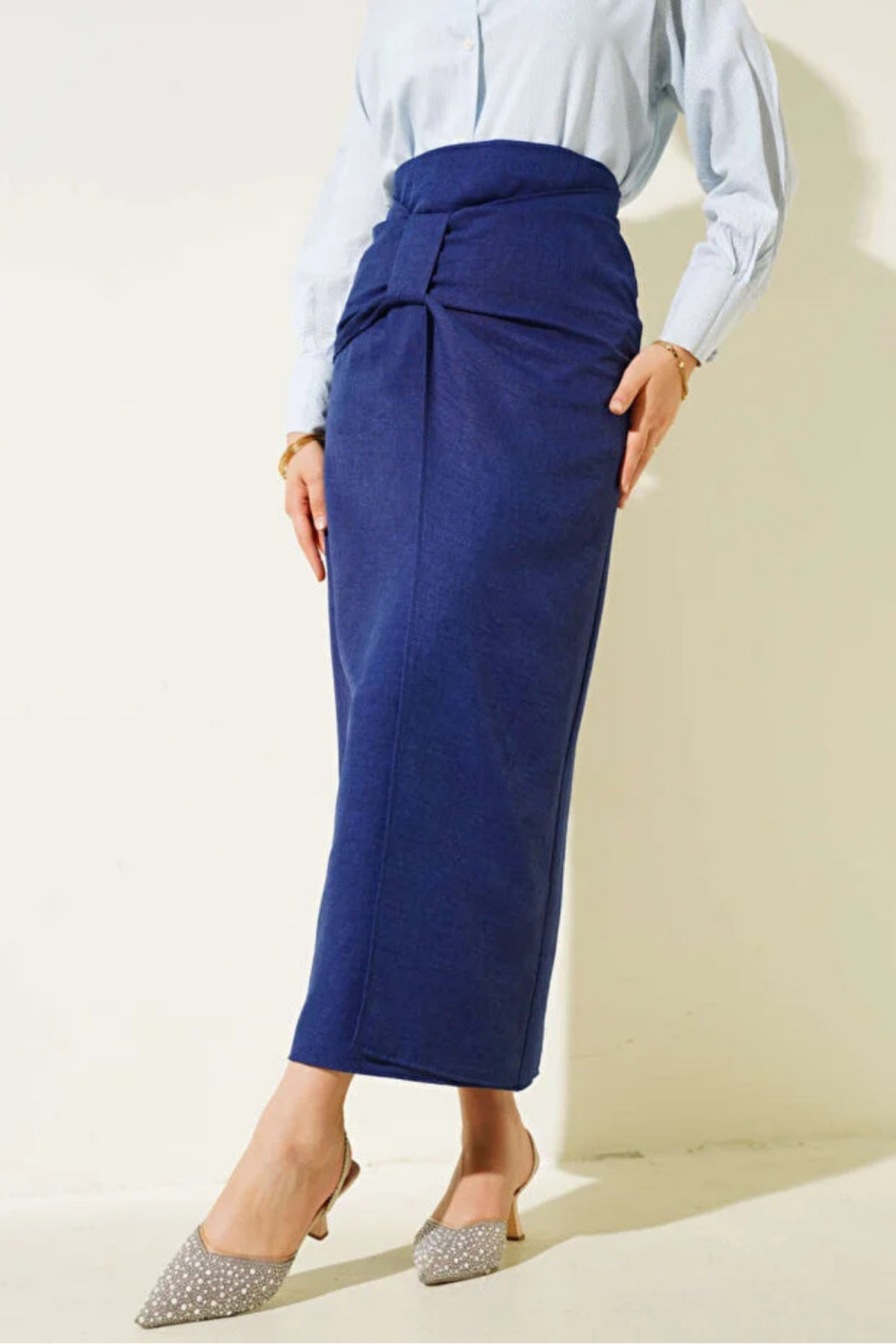 Beli Fiyonklu Helin Tesettür Etek- İndigo (TD212)