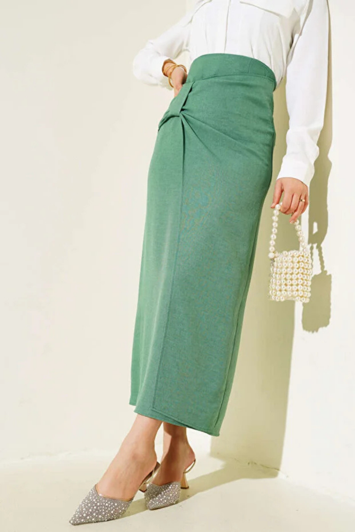 Beli Fiyonklu Helin Tesettür Etek- Mint Yeşili