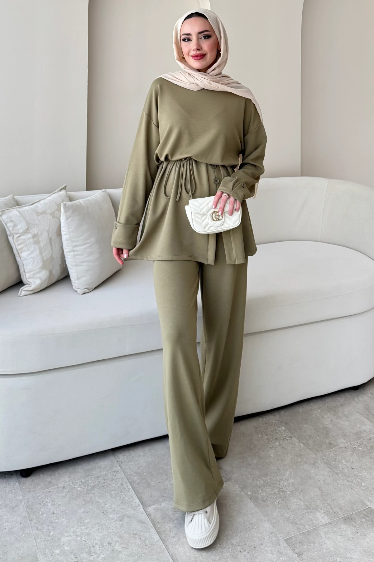 Berla Model Orijinal Oysho Düğmeli Alt Üst Tesettür Takım- Haki (TD222)