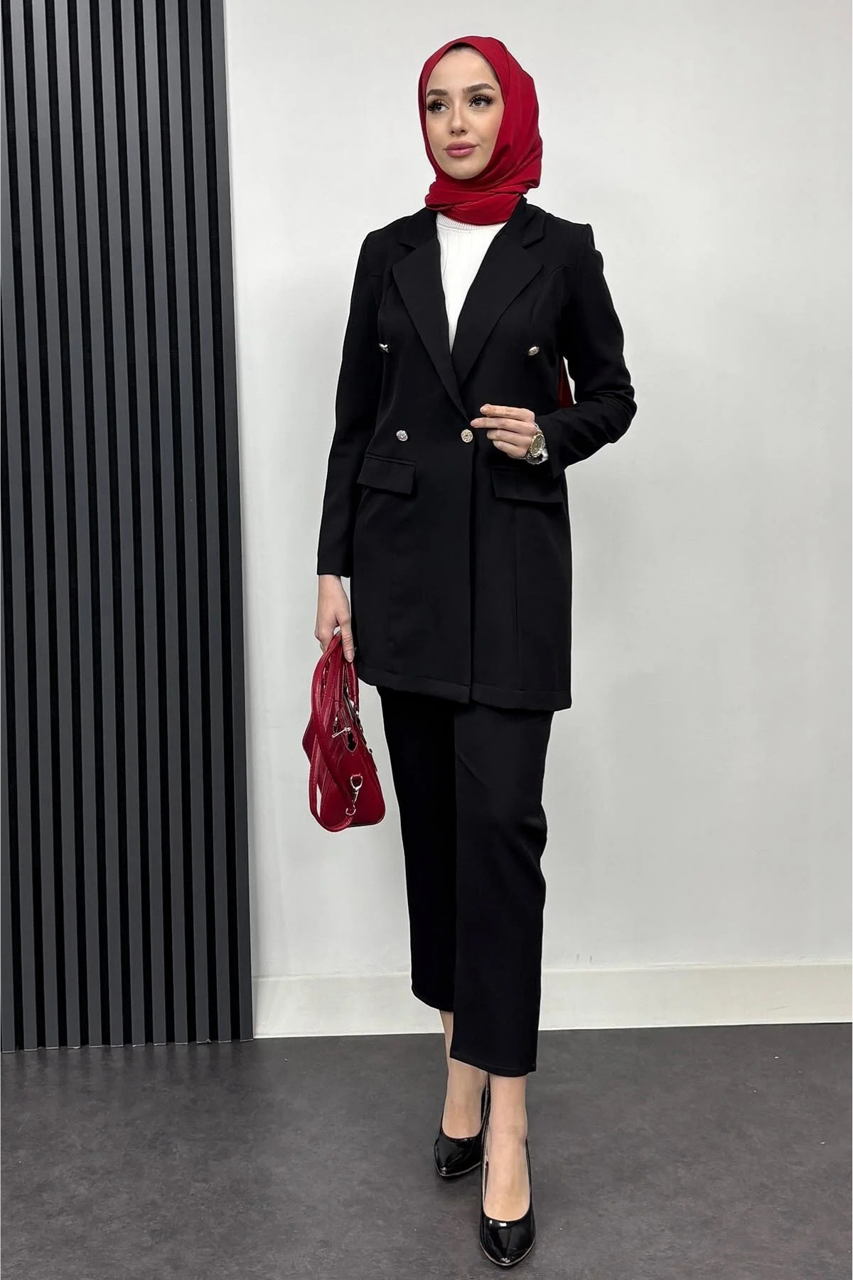 Blazer Ceket Pantolon Takım- Siyah (TD274)