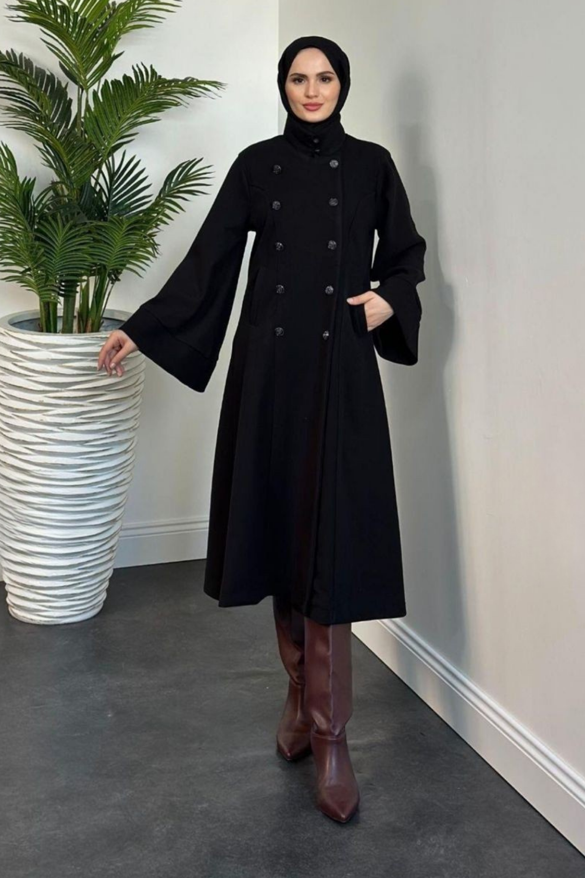 Hakim Yaka İspanyol Kol Astarlı Kaban- Siyah