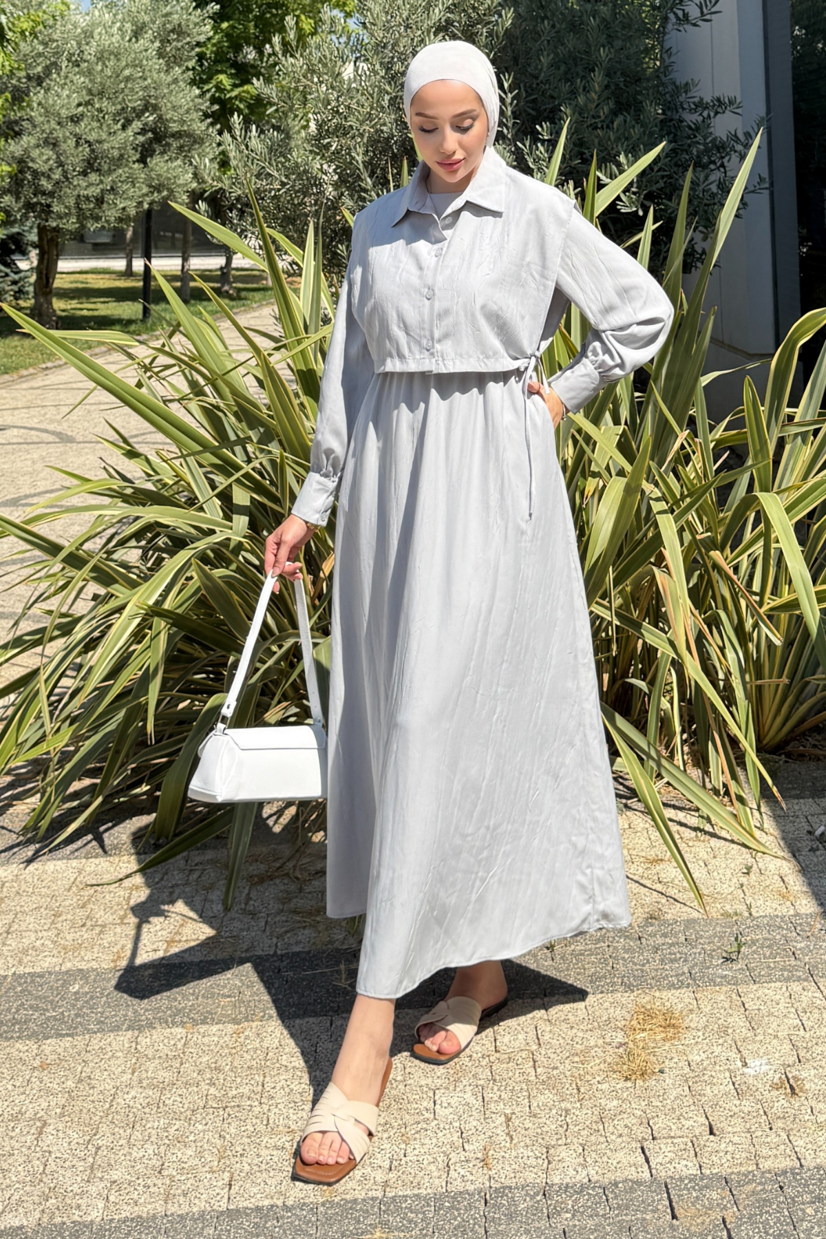 Kadın Bolerolu Lizza Kumaş İkili Elbise- Gri (TD149)