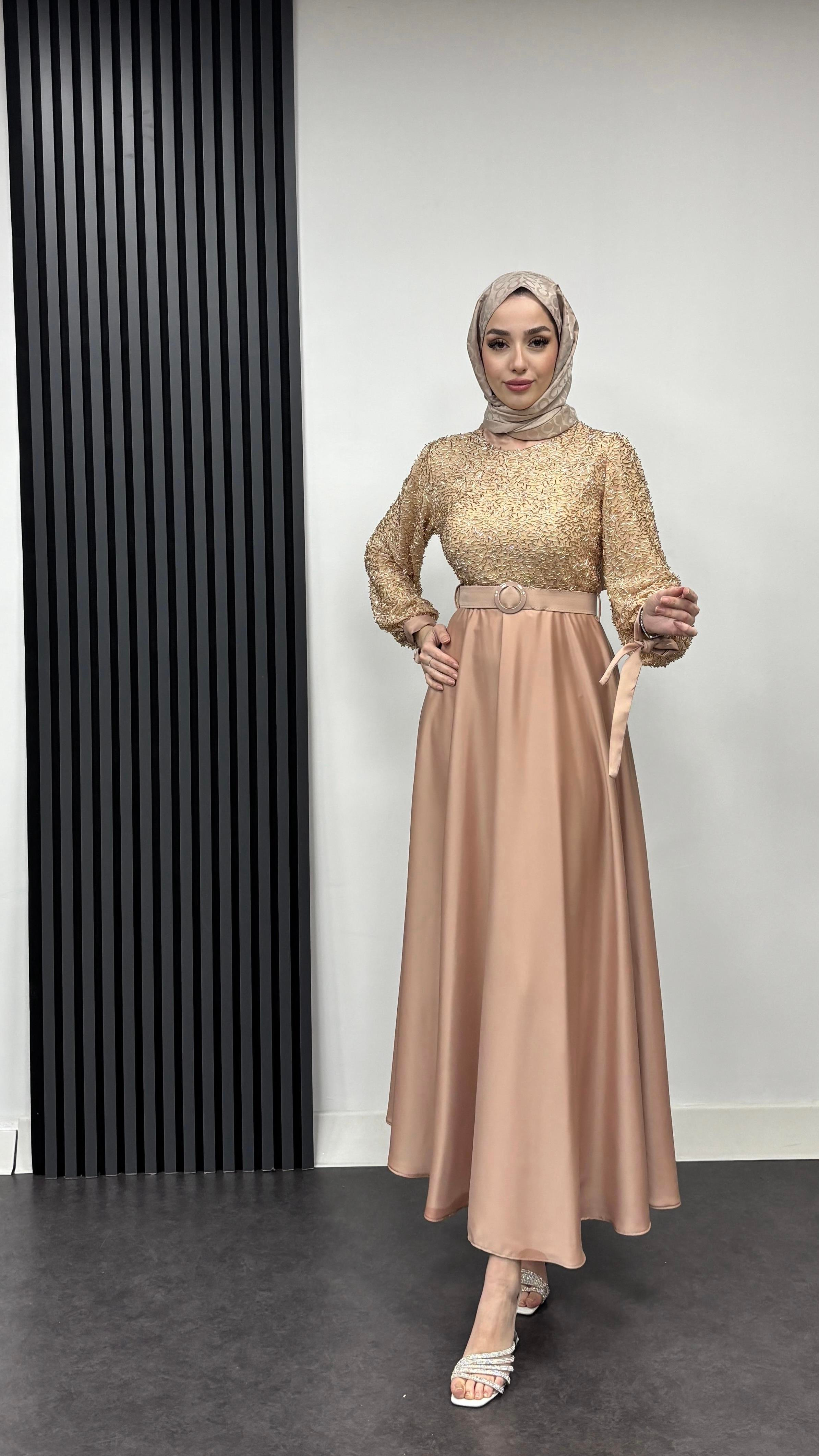 Kadın Mihret Üstü Boncuk İşleme Abiye-Bej