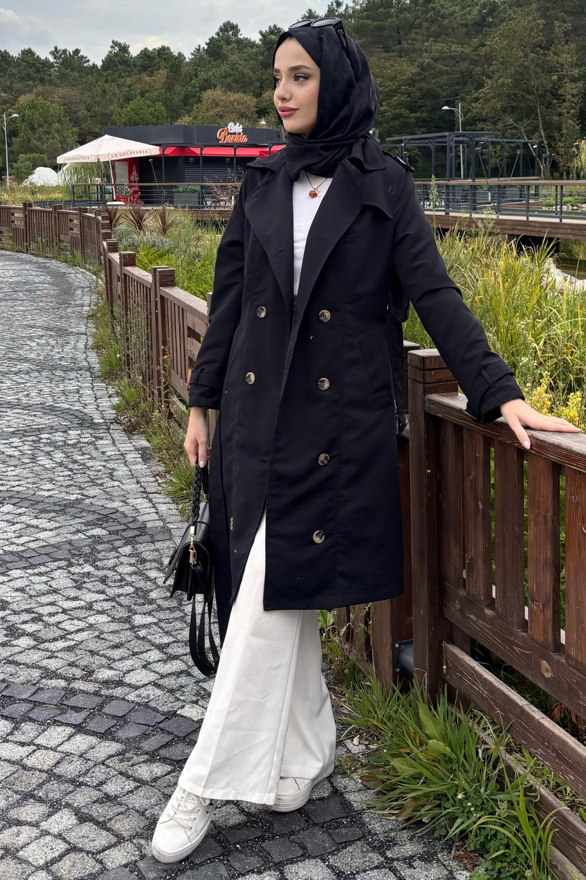 Kolu Kemer Detaylı Trenç -Siyah (TR3353-S)