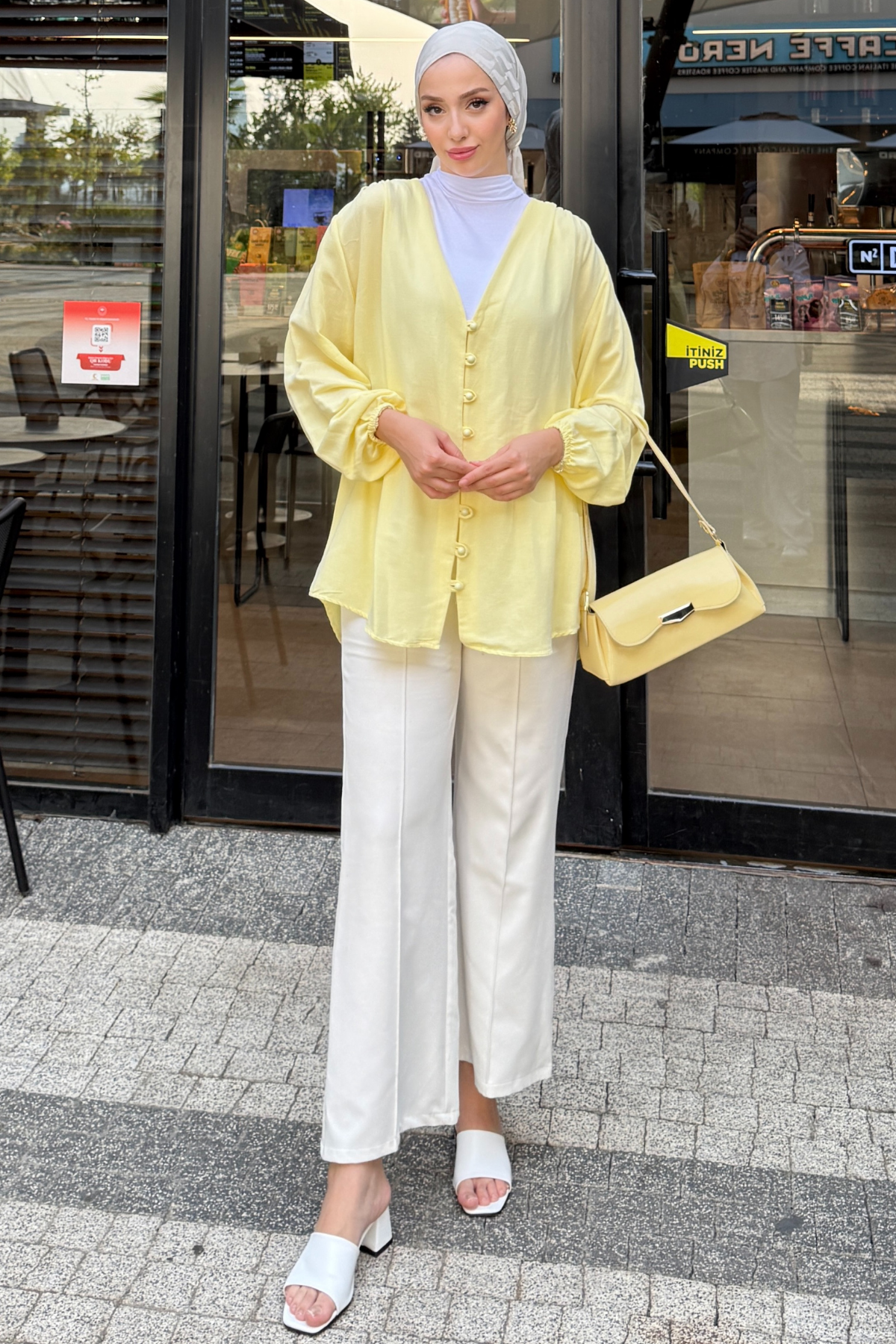 - Kemer veya kuşak detayına sahip olmayan bu kimono, minimalist tarzınıza uyum sağlayarak rahatlıkla kombinlenebilir.