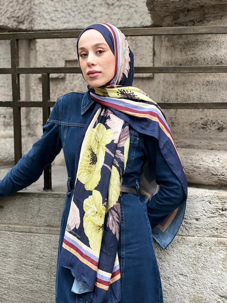 Margarit Desen Bambu Şal- Lacivert
