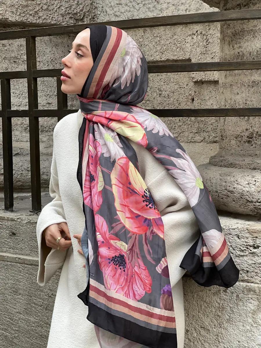 Margarit Desen Bambu Şal- Siyah Koyu Gri