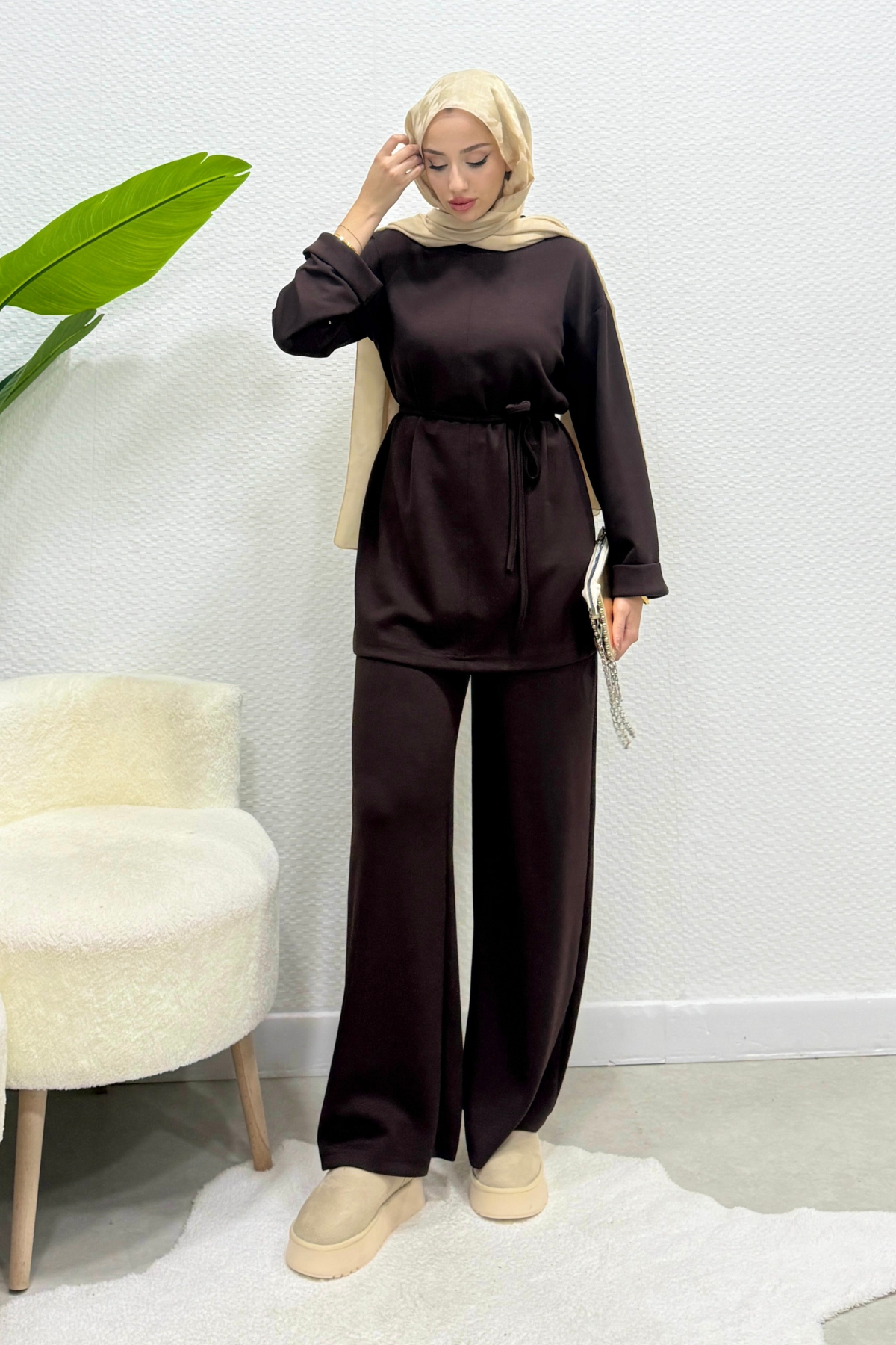 Modal Kumaş Oysho Alt Üst Tesettür Takım- Acı Kahve (TD225)