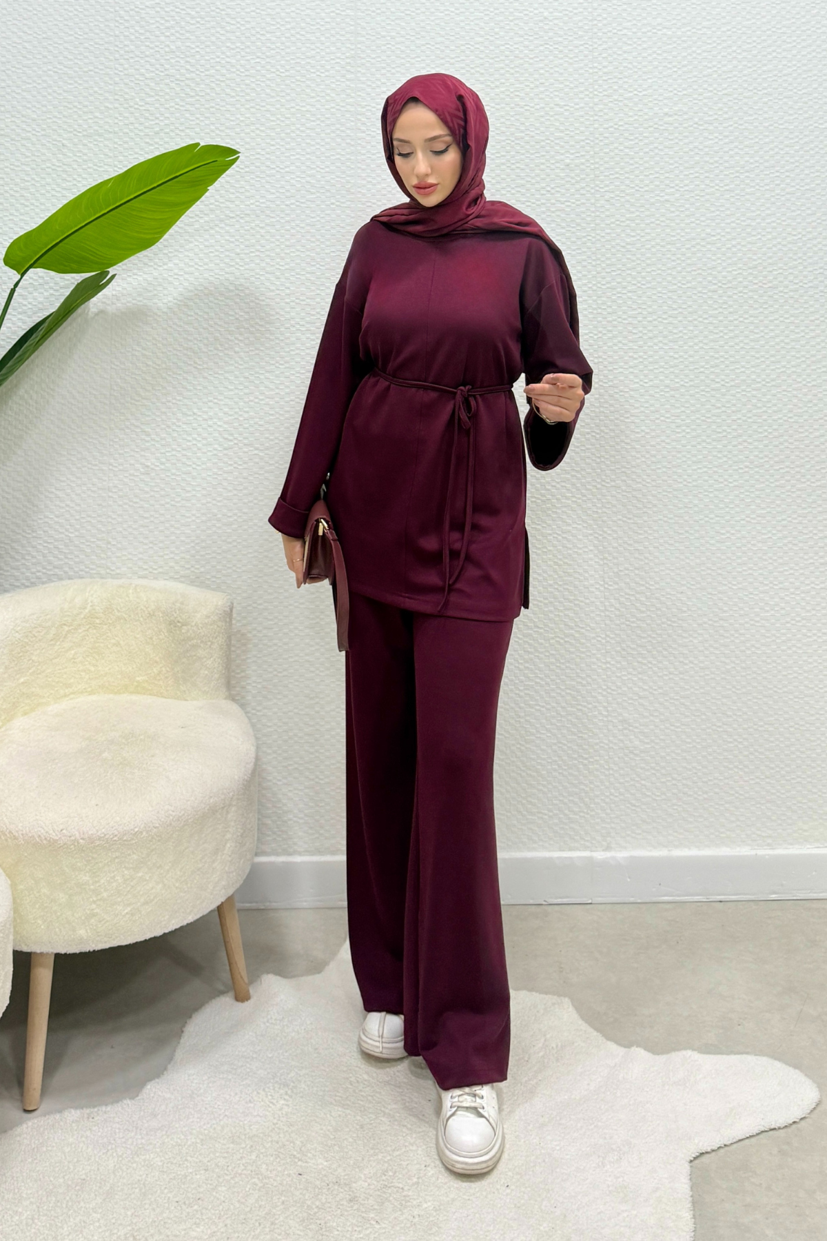 Modal Kumaş Oysho Alt Üst Tesettür Takım- Bordo (TD225)