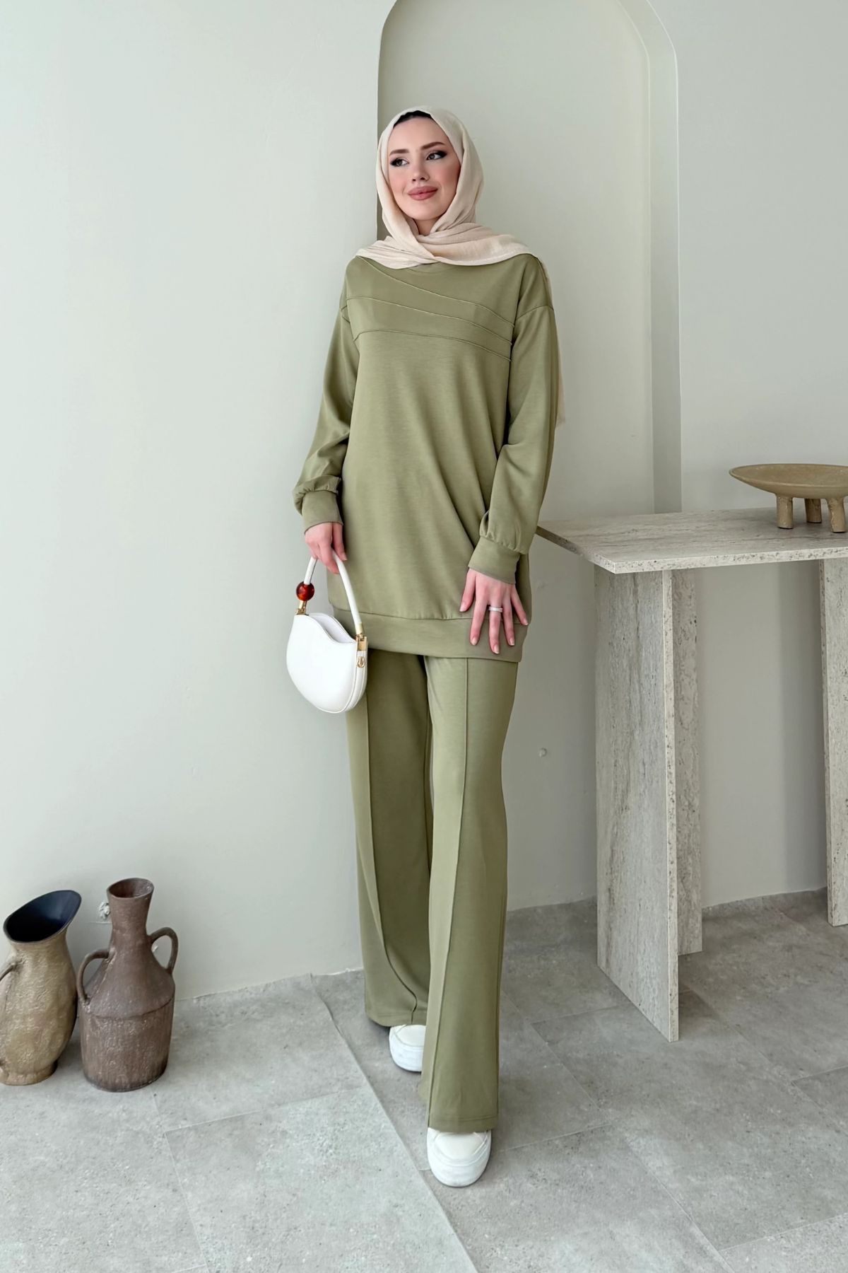 Nori Premium Kumaş Tesettür Takım- Çağla Yeşili