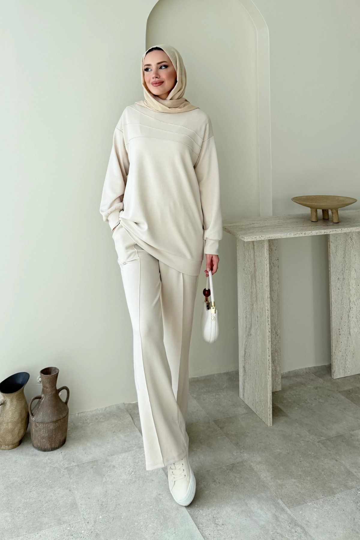 Nori Orijinal Modal Kumaş Tesettür Takım- Taş