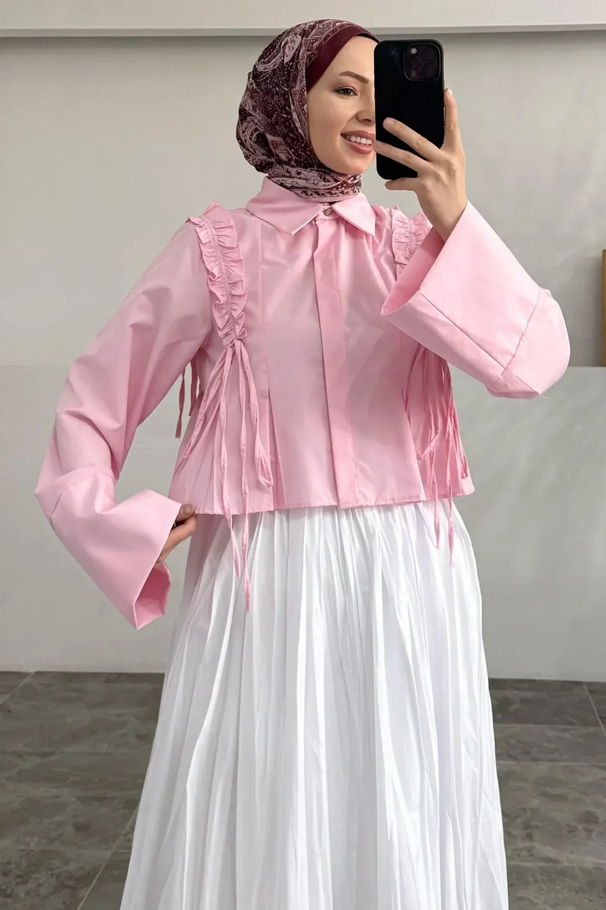 Omuzdan Bağlamalı Fırfır Detaylı Gömlek- Pembe (TD206)
