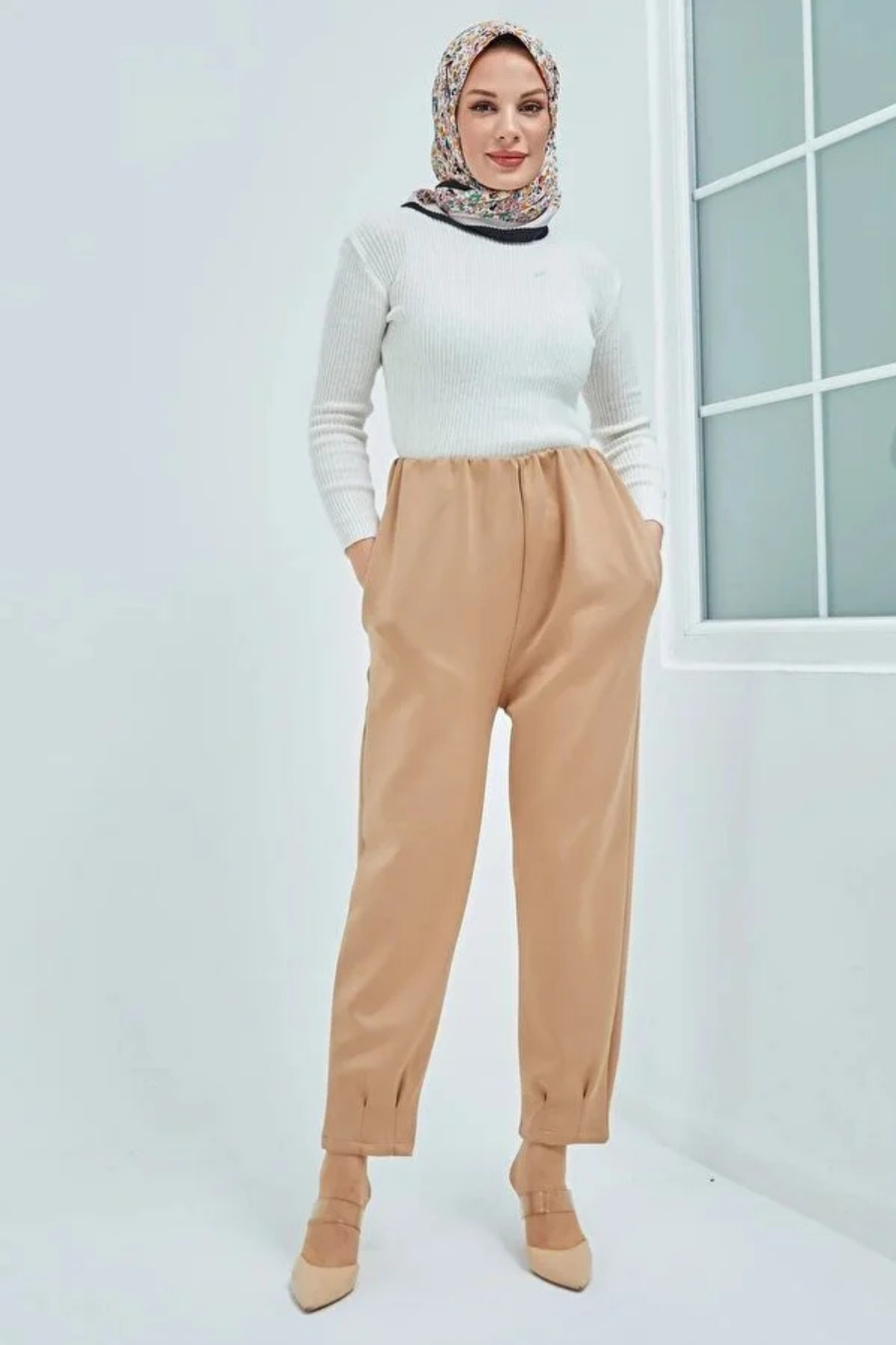 Paça Pile ve Bel Detay Scuba Kumaş Pantolon- Taba Paça Pile ve Bel Detay Scuba Kumaş Pantolon- Kahverengi Paça Pile ve Bel Detay Scuba Kumaş Pantolon- Bej
