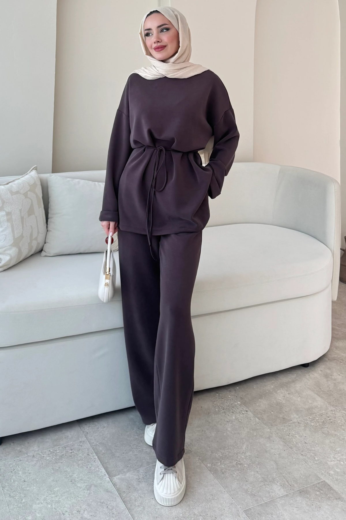 Premium Orijinal Oysho Alt Üst Tesettür Takım- Acı Kahve (TD220)