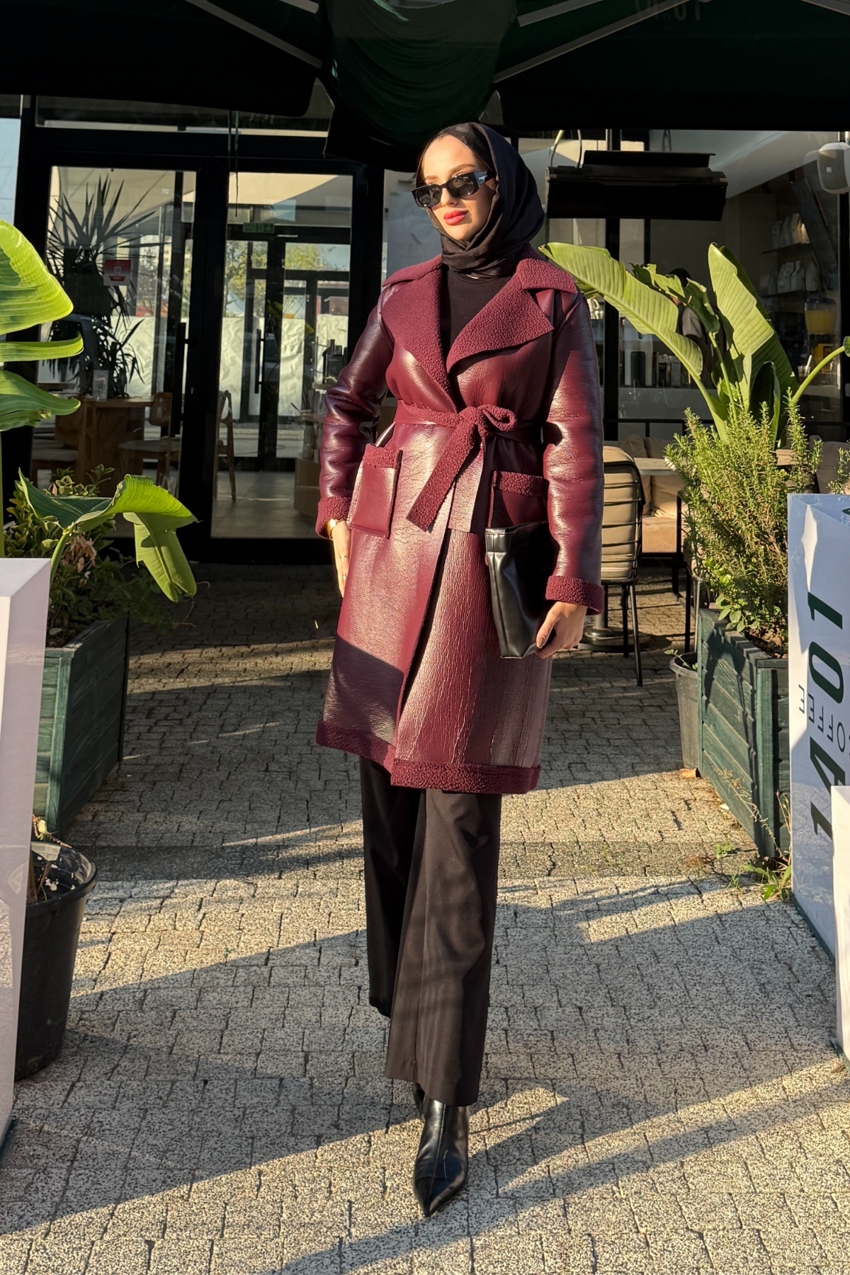 Ribana İçi Kürklü Suni Deri Kaban- Bordo