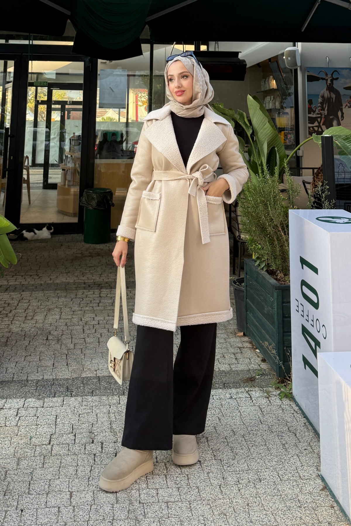Ribana İçi Kürklü Suni Deri Kaban- Krem