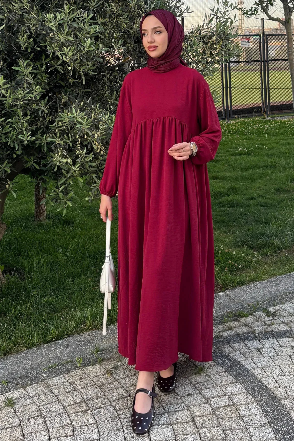 Robalı Ayrobin Tesettür Elbise- Bordo (TD201)