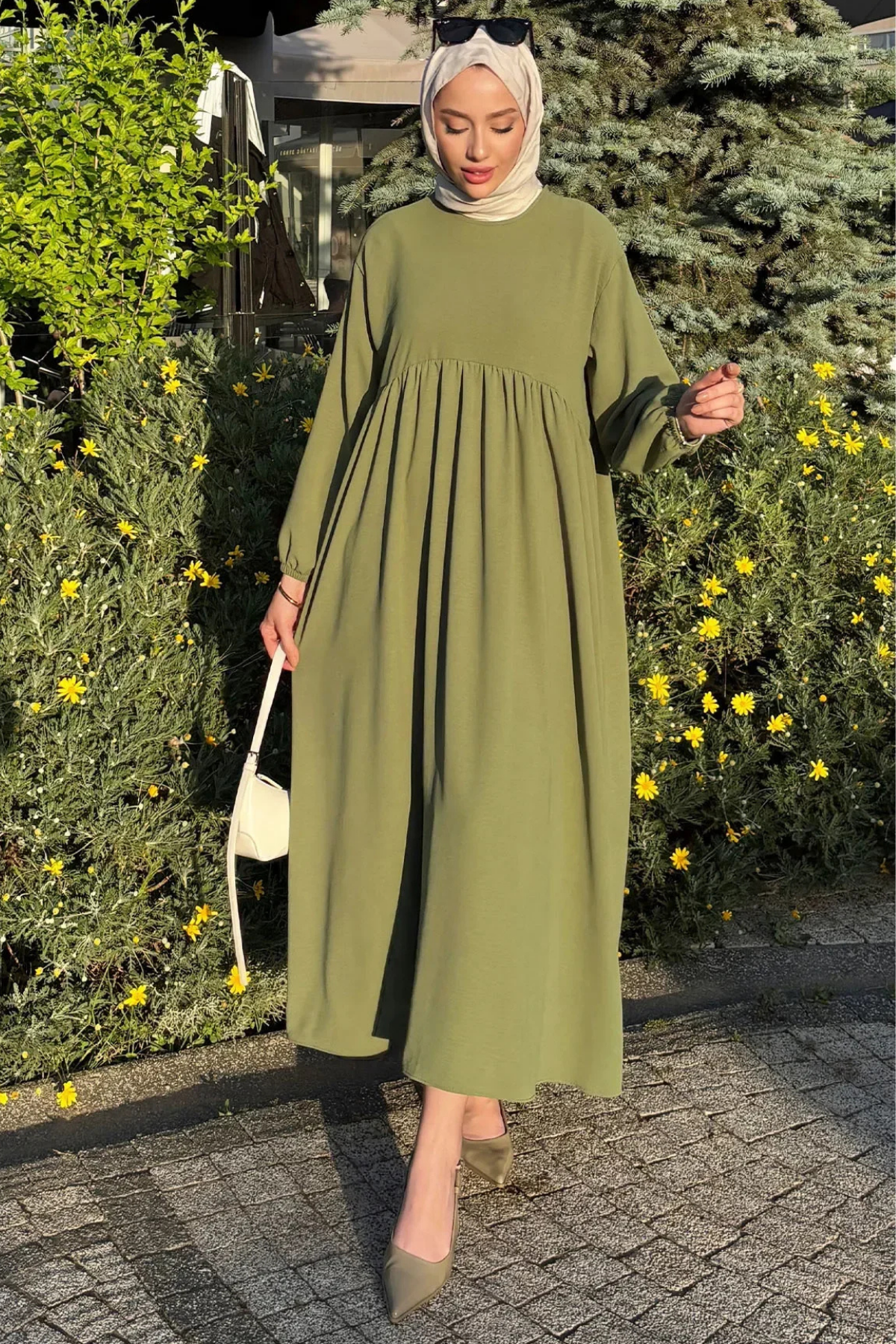 Robalı Ayrobin Tesettür Elbise- Haki (TD201)