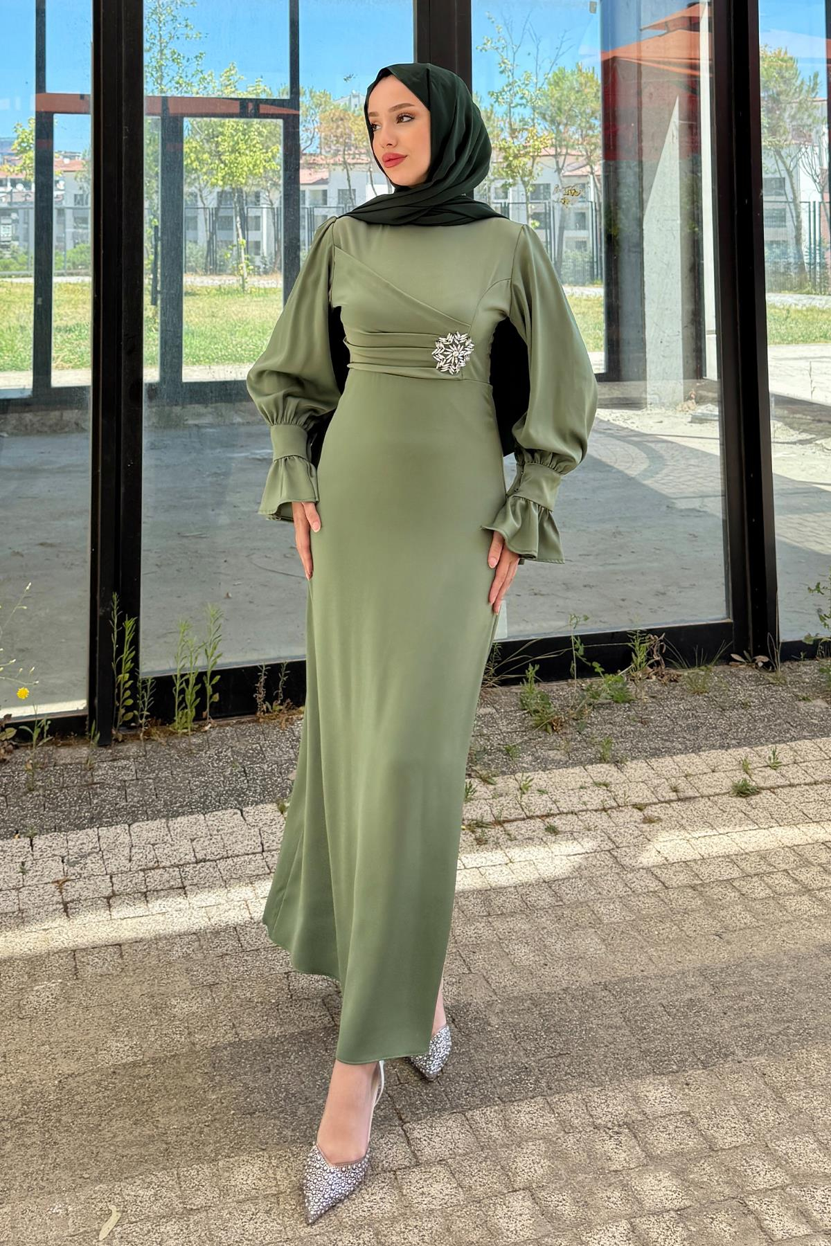 Saten Yandan Taş İşlemeli Abiye-Bej Saten Yandan Taş İşlemeli Abiye-Siyah Saten Yandan Taş İşlemeli Abiye-Mint