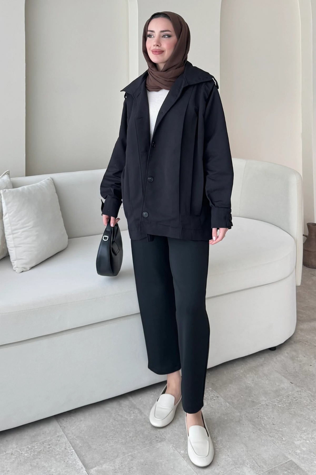Şerit Detaylı Astarsız Carla Trençkot Standart Beden- Siyah (36-42 Uyumludur)