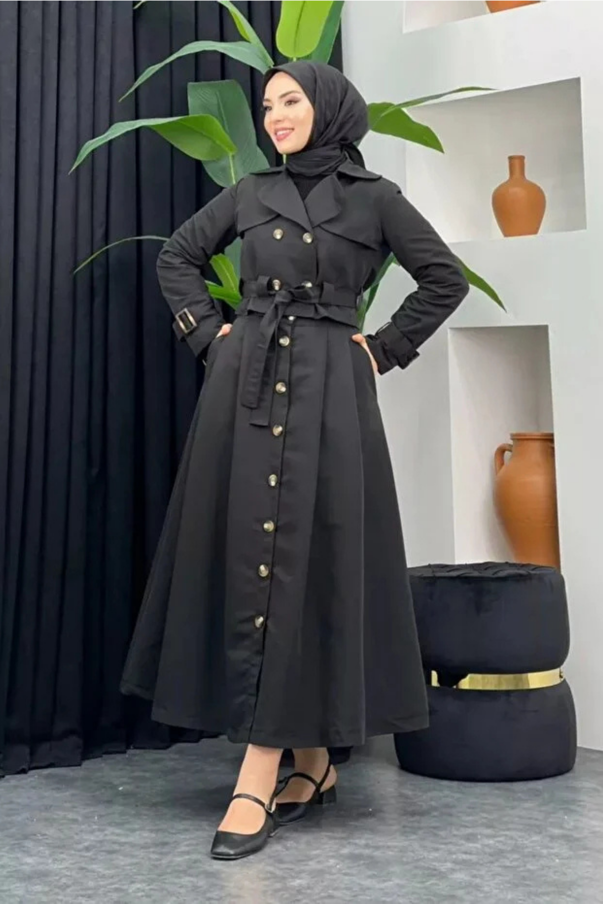 Trençkot Etek 2'li Tesettür Takım- Siyah (TD234)