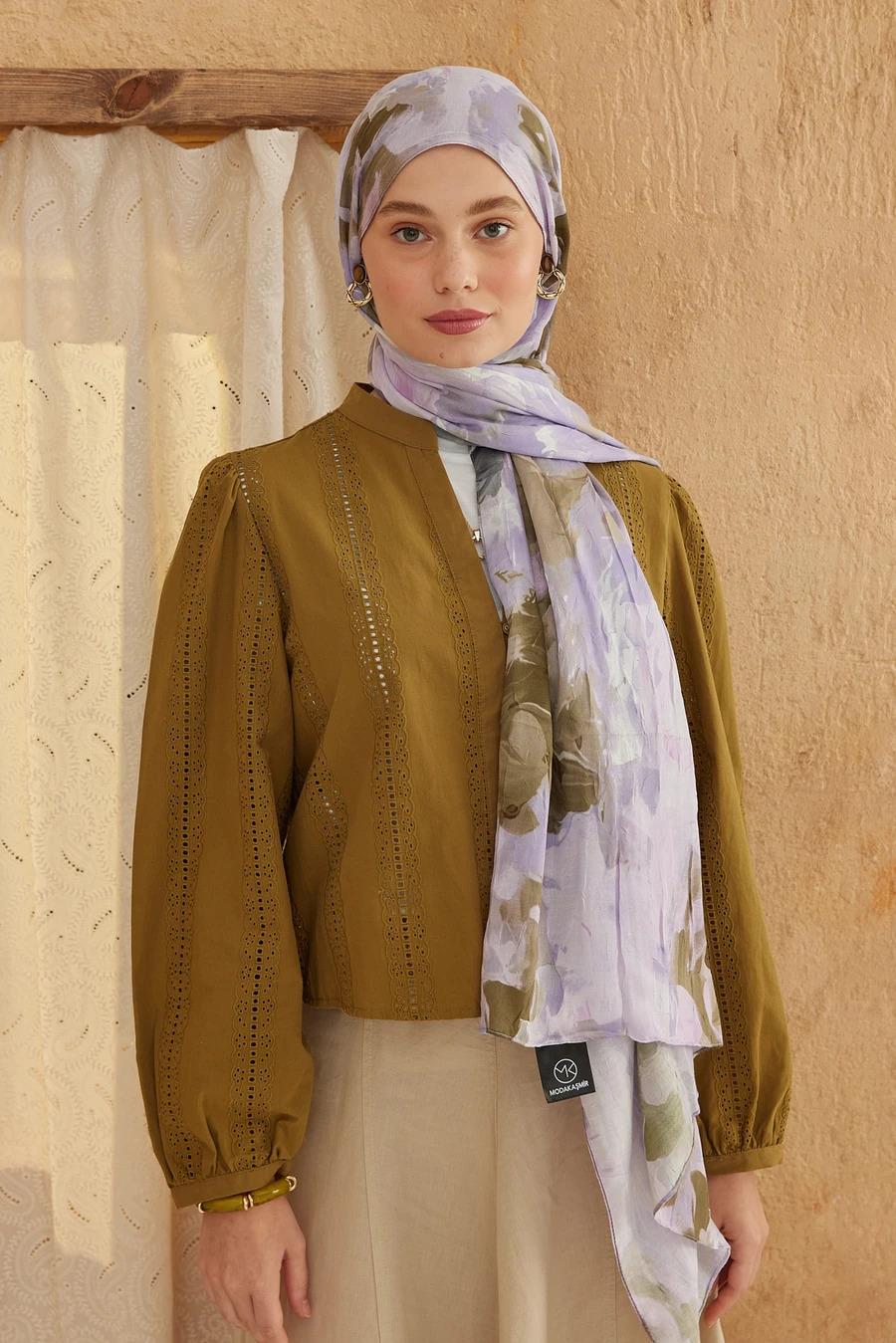 Watercolor Abstract Desen Bambu Şal- Lila Haki (TS02)